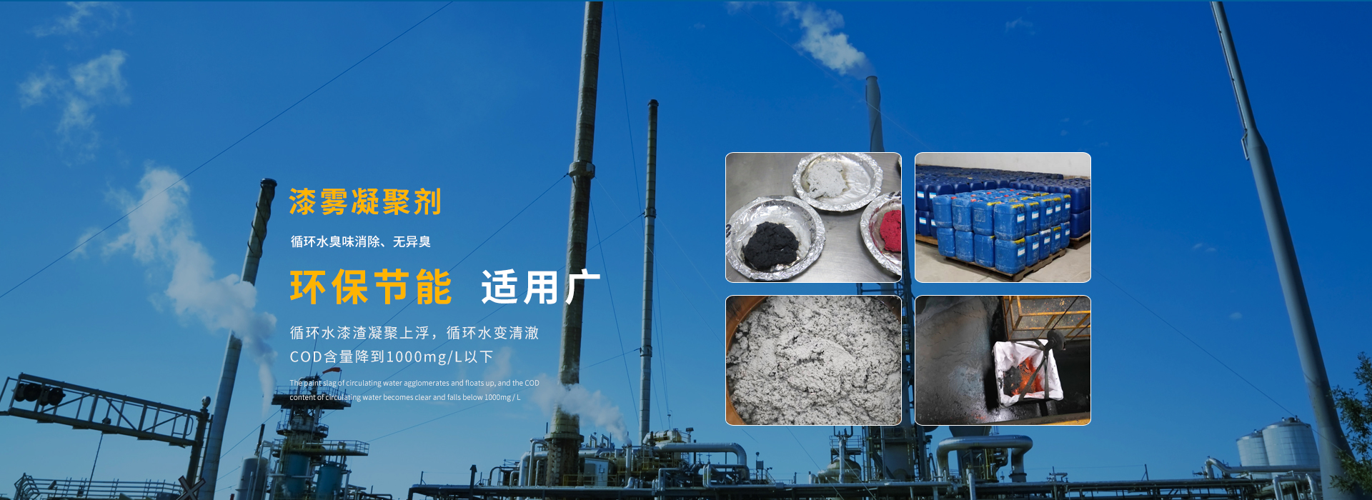 漆霧凝聚劑由破粘劑和絮凝劑組成,破粘劑大多由中等分子量的陽(yáng)離子聚合物組成,電荷極高,對(duì)漆滴能產(chǎn)生很強(qiáng)的吸引力,當(dāng)漆滴被“捕捉”吸附后它利用二極不同的親和性將漆滴完全包裹,并穿透漆滴,破壞涂料的功能基團(tuán),使其完全消除粘性,并帶動(dòng)被包裹破粘的漆滴上浮。絮凝劑大多由分子量幾千萬(wàn)的聚合物組成,通過(guò)在分子之間的“架橋”作用,聚集被破壞的漆霧和雜質(zhì)成較大的基團(tuán),使其堅(jiān)固和粘合,增強(qiáng)機(jī)械脫水的效率。絮凝劑還可中和系統(tǒng)電荷,保持系統(tǒng)中的離子平衡,且分子量較大,使凝集基團(tuán)在系統(tǒng)中上浮速度加快,并結(jié)成漆渣浮于水面。